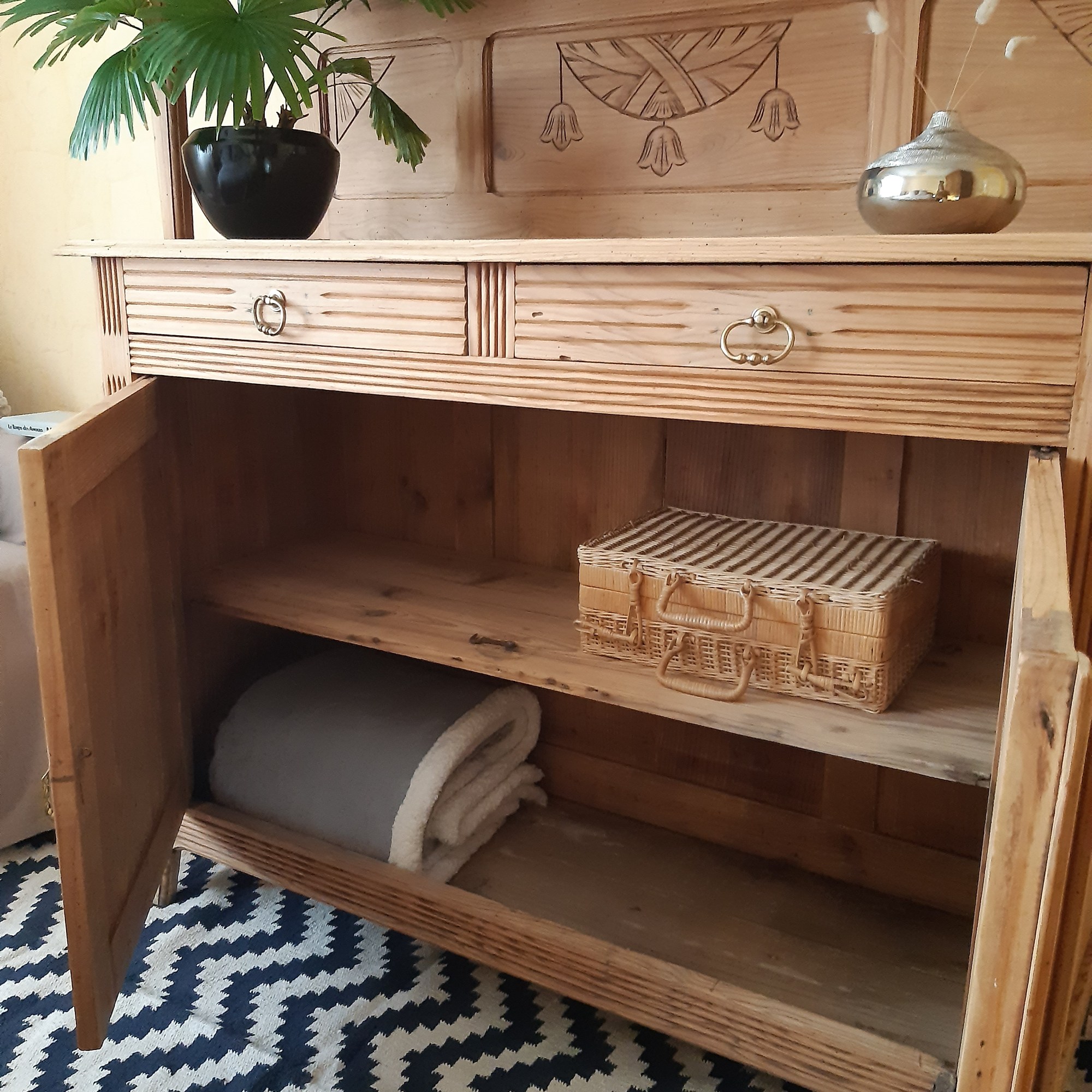 Ce rangement vintage a beaucoup de style avec ses lignes simples et élégantes.