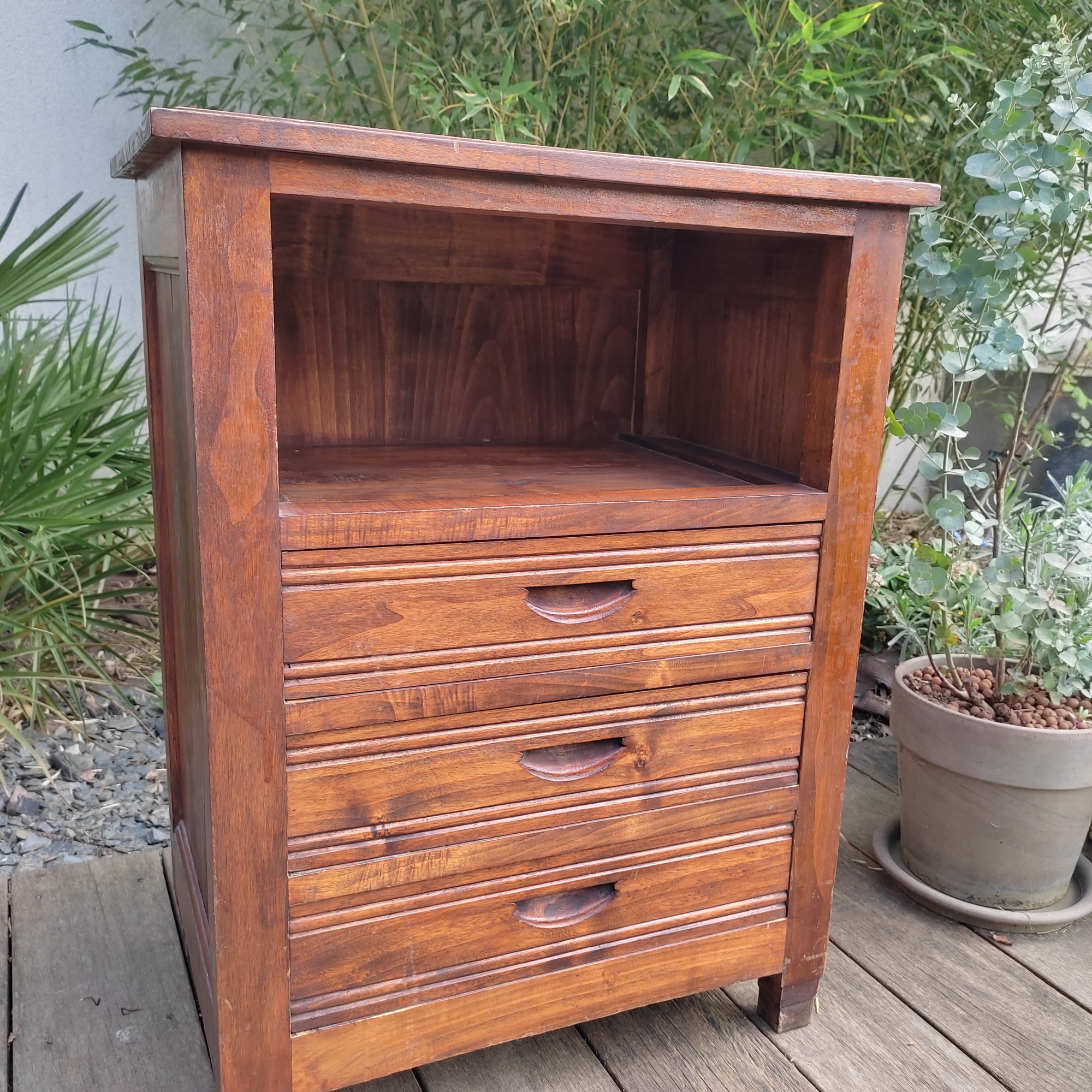 Un ponçage fin a été fait sur toute la surface du meuble pour sublimer la beauté du bois naturel.