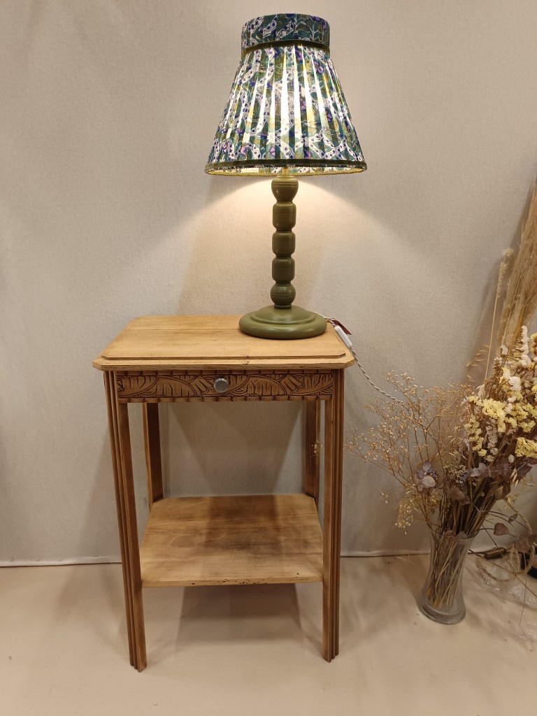Un petit tiroir sublimé d’un papier peint liberty vintage, rend ce petit meuble très pratique. Idéal en bout de canapé ou dans une entrée.
